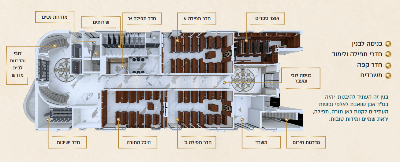 בנין זה העתיד להיבנות, יהיה בס"ד אבן שואבת לאלפי נפשות העתידים לקנות כאן תורה, תפילה, יראת שמים, ומידות טובות.